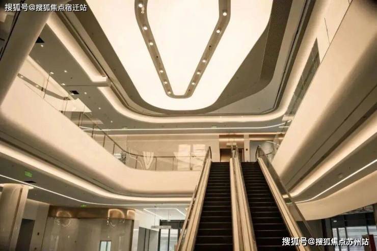 商业南区主入口,“梦露裙摆式”流线一体悬挑大棚和超大通高玻璃幕墙,让人眼前一亮。6000平方米的中心广场引入梯田景观元素,形成无界商业空间,松弛感满满。