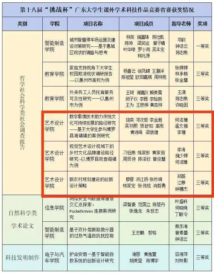 五月,第十八届“挑战杯”广东省赛中,我院学生团队凭借专业优秀项目,斩获哲学社会科学类二等奖1项、三等奖2项,体现了设计思维在解决社会实际问题中的跨界应用价值。