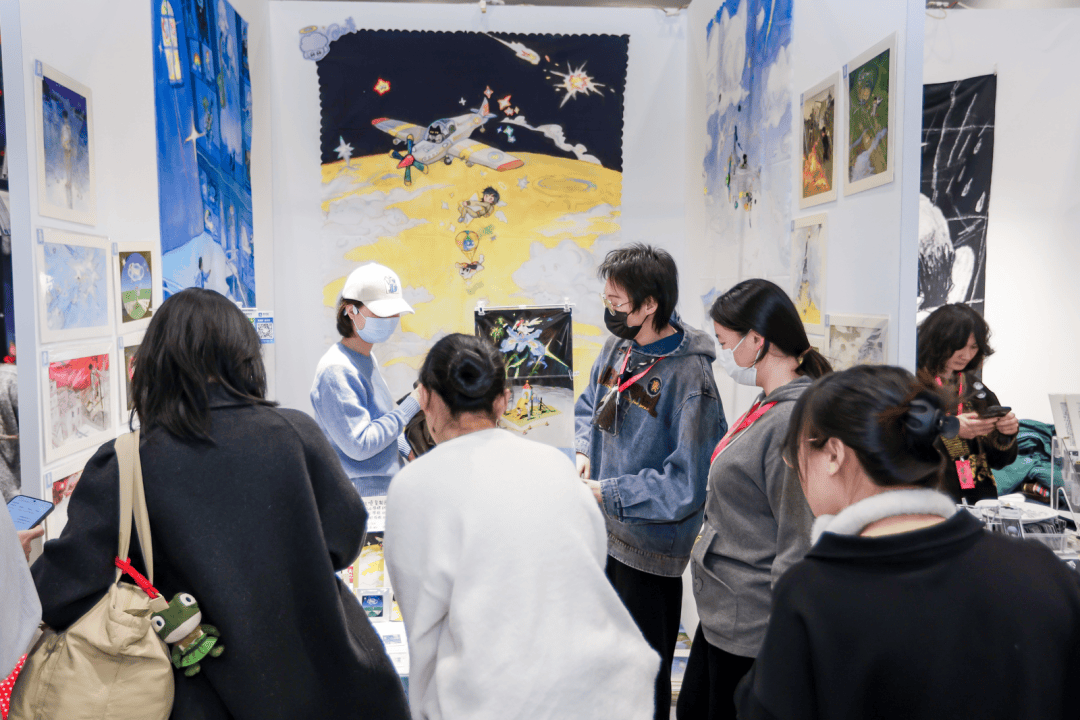 但是它有个特点,特别高价的插画、版画在广州卖得不太理想,一个插画5万块钱,或者10万块钱,那基本上卖不动。但是3天展期,观众真多,真买东西,氛围非常好,展商都能挣到钱。
