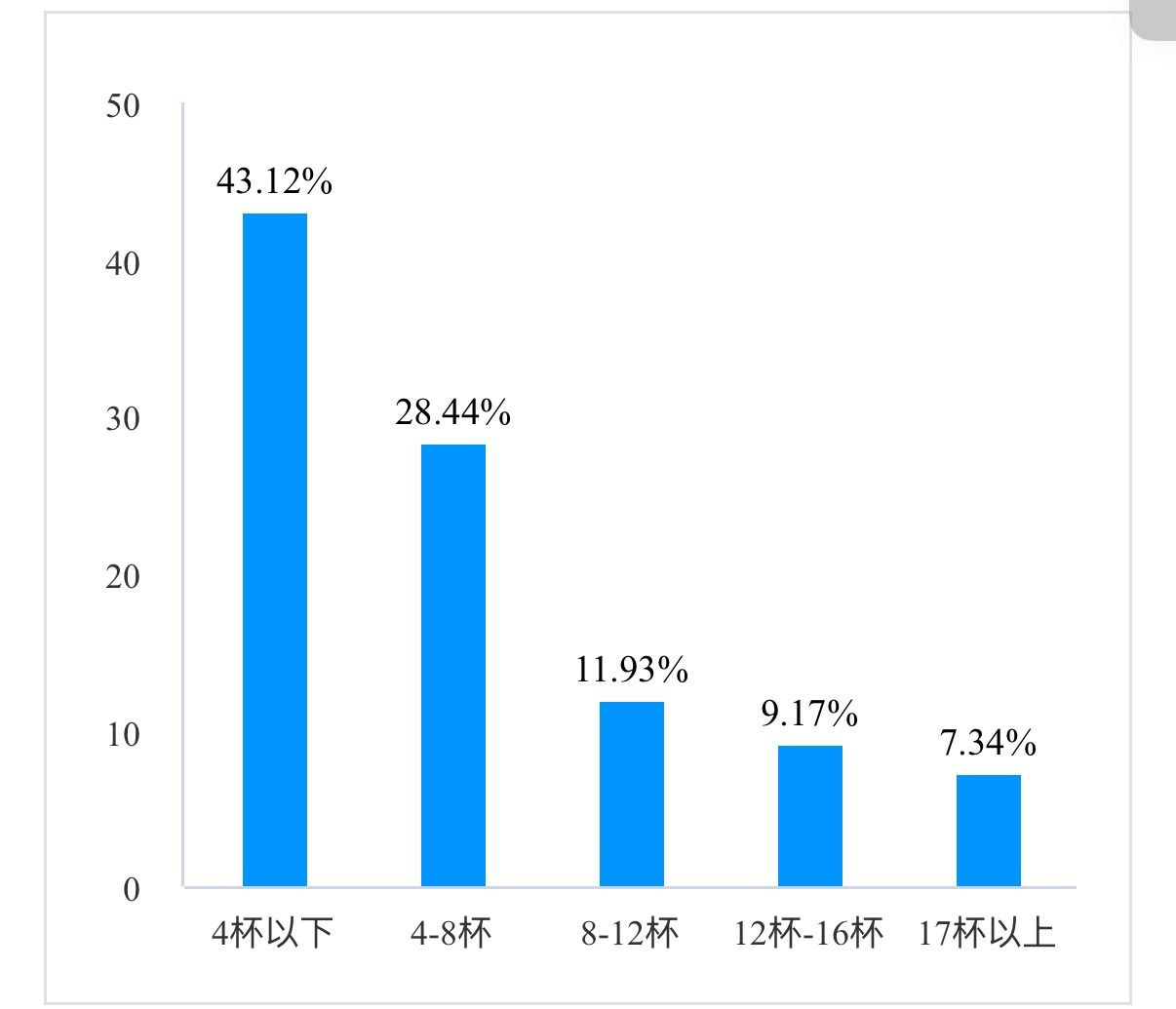 47.71%的受访者明确表示,2025年的自己“更养生了,有意识控制喝咖啡/茶饮的次数”。近三成受访者表示,喝咖啡或茶饮的频率下降。与之呼应的是,月均消费现制茶饮咖啡数量在“4杯以下”(平均一周消费次数在1次以下)的受访者占比最高,达到43.12%。