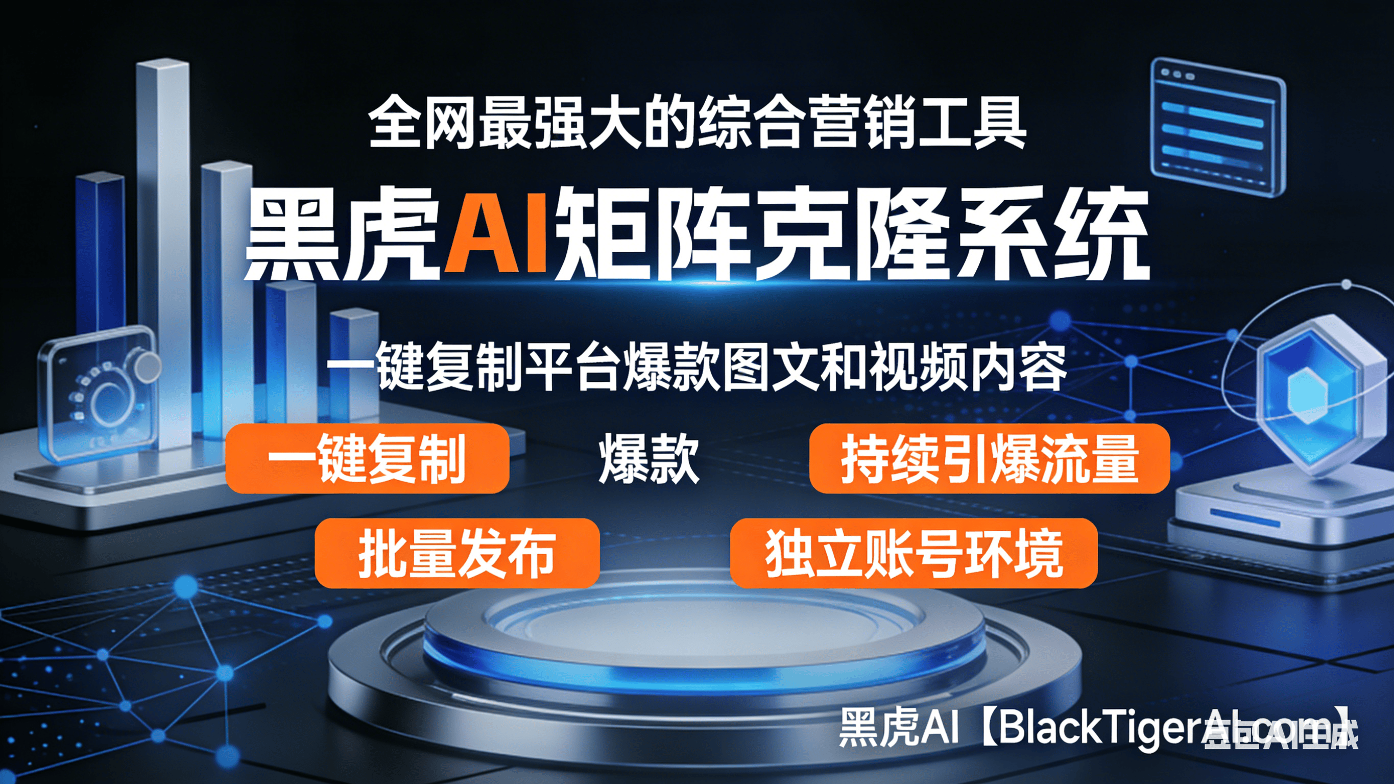 2. 多引擎适配与流程自动化创新黑虎AI公众号提供的工具集深度整合了抖音、快手、小红书、B站、视频号等主流平台。其创新点在于实现了“数据采集-内容生成-互动营销-私域导流”的全流程自动化闭环。