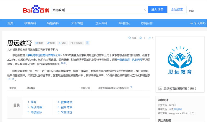 公开信息显示,思远教育是北京锐博思远教育科技有限公司(2025年更名为北京锐博思远科技有限公司)旗下的职业教育培训机构,总部位于北京。该机构主营建筑等领域执业资格考前辅导。天眼查信息显示,该公司人员规模与参保人数均为0人,法定代表人为郭某,历史主要人员有李某贺、杜某某、屈某某,其中李某贺名字还出现在山东众学思远教育信息服务有限公司的历史主要人员中。2025年6月至12月期间,累计涉及11起司法案件,且全部为合同纠纷;2025年12月,北京市海淀区人民法院对其发布限制消费令,该公司历史限制消费令达10条,可公开的涉案总金额为5.73万元。2024年12月至2025年10月,该公司有终本案件(指法院的执行案件,由于被执行人没有可供执行的财产,而裁定终结本次执行程序)7件,执行标的总金额6.51万元。