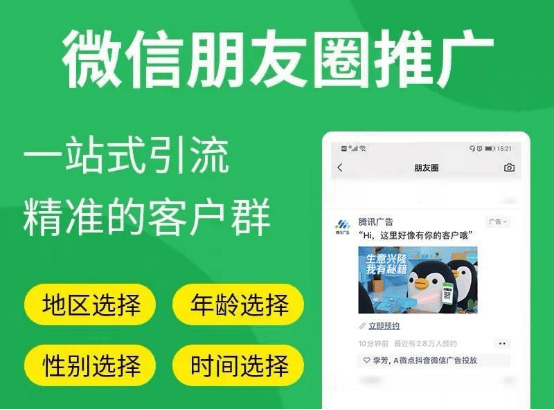 微信朋友圈广告能够将广告强制推送到非好友客户的朋友圈中,185,5588,1394而且可以根据多种条件精准投放至用户手机。