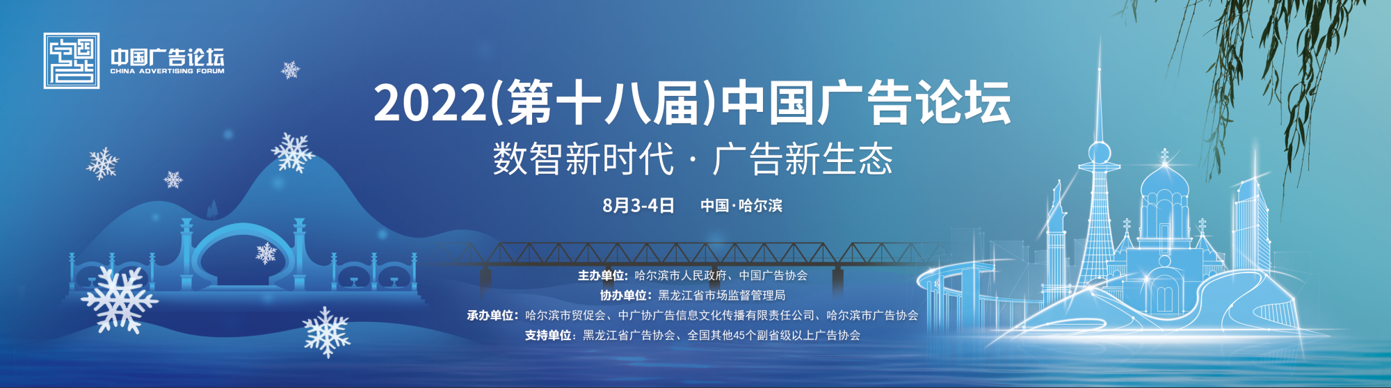 8月3—4日,由哈尔滨市人民政府、中国广告协会共同主办的2022(第十八届)中国广告论坛将在哈尔滨市举办。